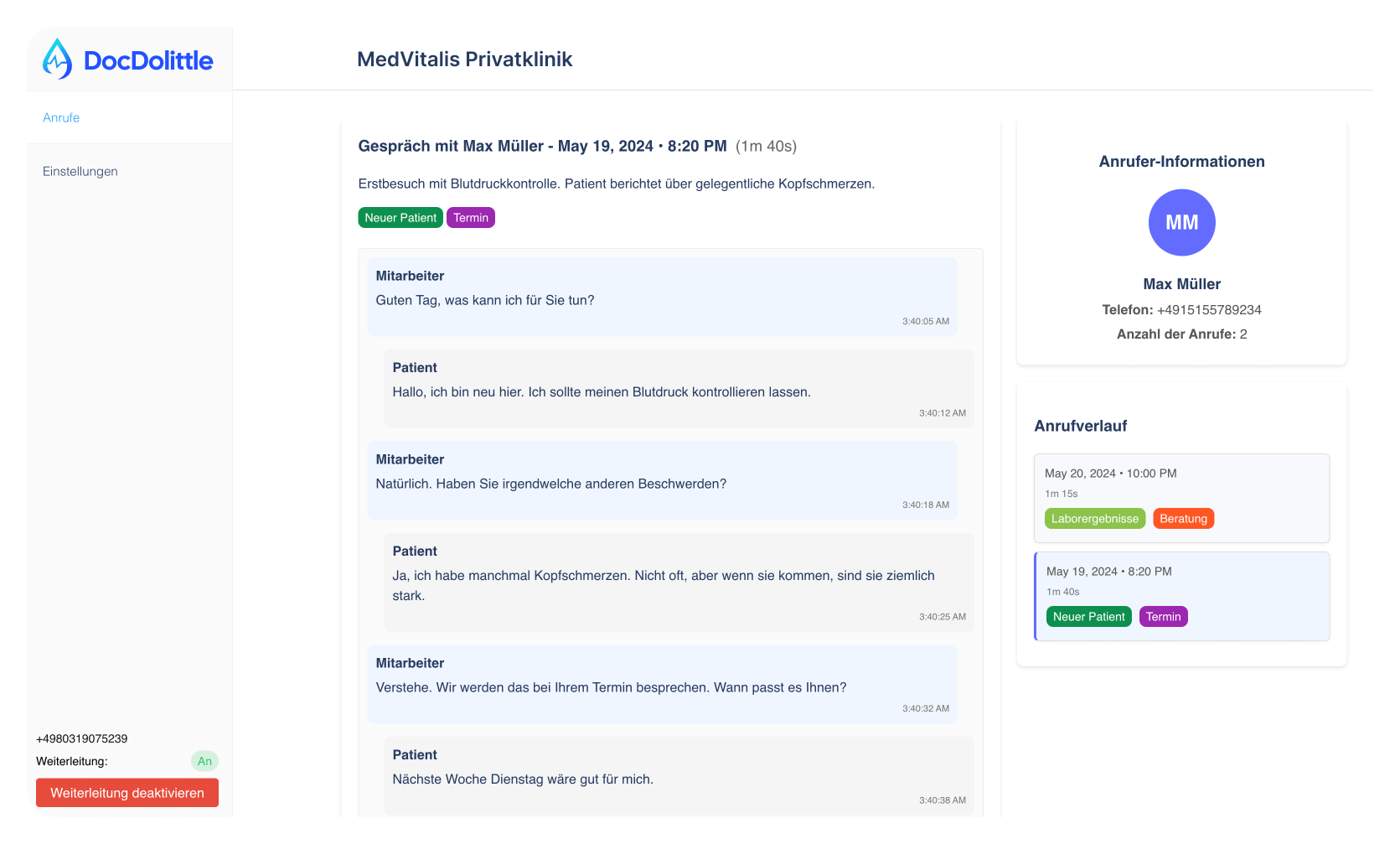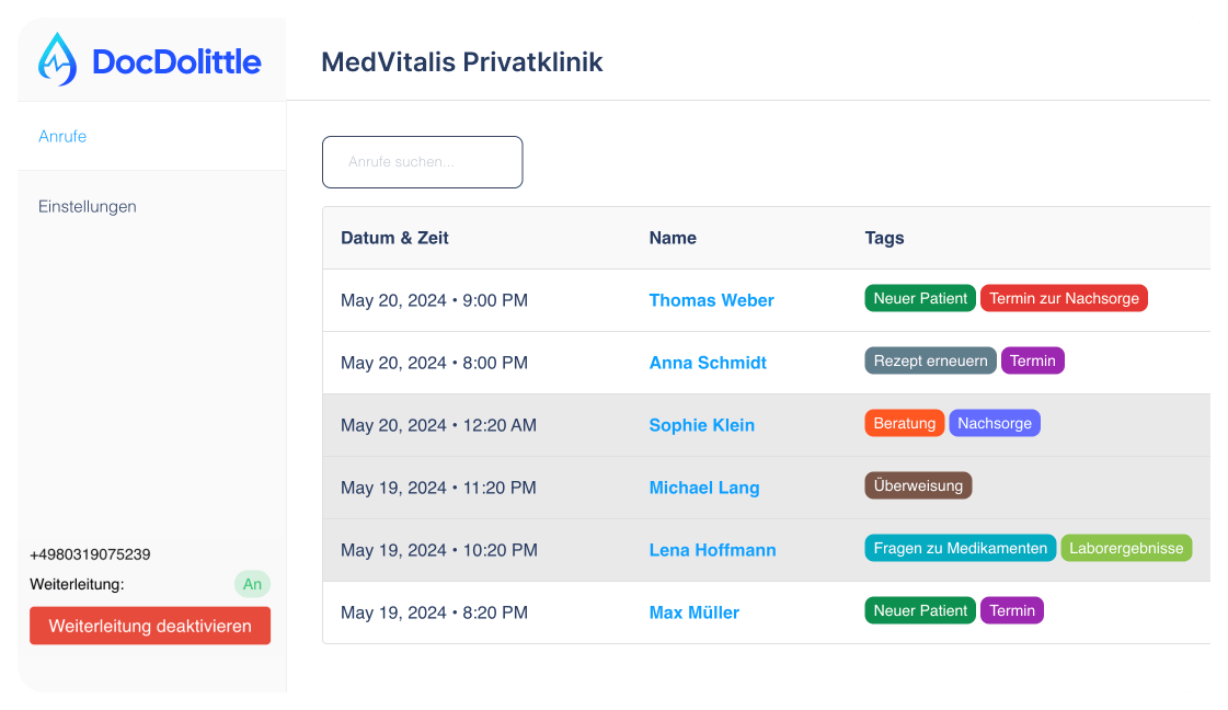 📞 Wie funktioniert das Anrufermanagement mit DocDolittle?